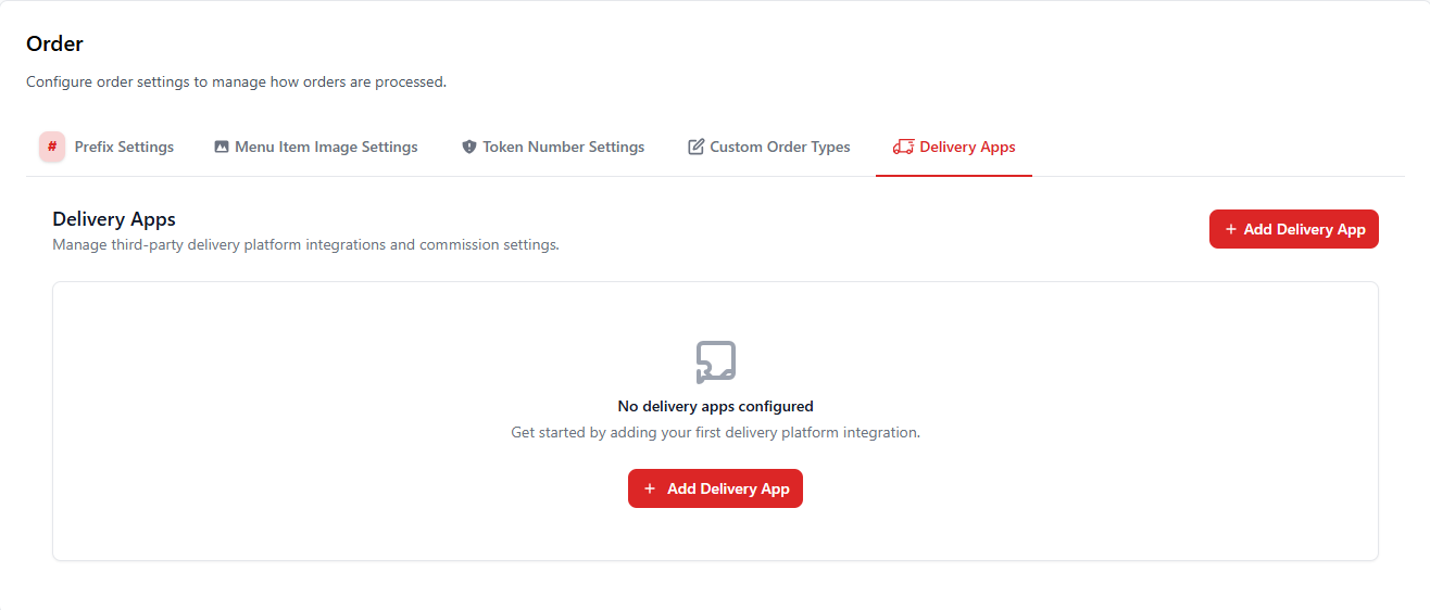 | Add Delivery App | Connect a new third-party delivery platform. |